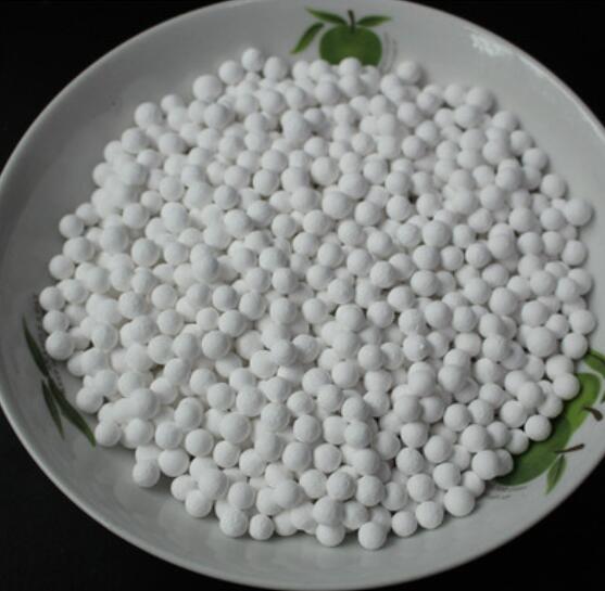 雙氧水用活性氧化鋁球為白色、球狀多孔性物質;無毒、無臭、無味、不溶于水、酯、烴、醇、等有機溶劑,具有在水和堿中不粉化、不變軟、澄清度高,使用壽命長,對蒽醌衍生物降解和再生能力強等優點,是蒽醌法生產雙氧水的專用吸附劑。本產品除吸附工作液中的堿以外,對氫化降解物有很強的再生能力,可將氫化反應中增加的降解物轉化成有效蒽醌,保證了總有效蒽醌量的穩定,有利于氧化反應的進行,并減少了蒽醌的添加量,節約了運行成本。同時,考慮到再生的需要,生產雙氧水用活性氧化鋁球保證了良好的機械性能,再生后的活性變化較小。